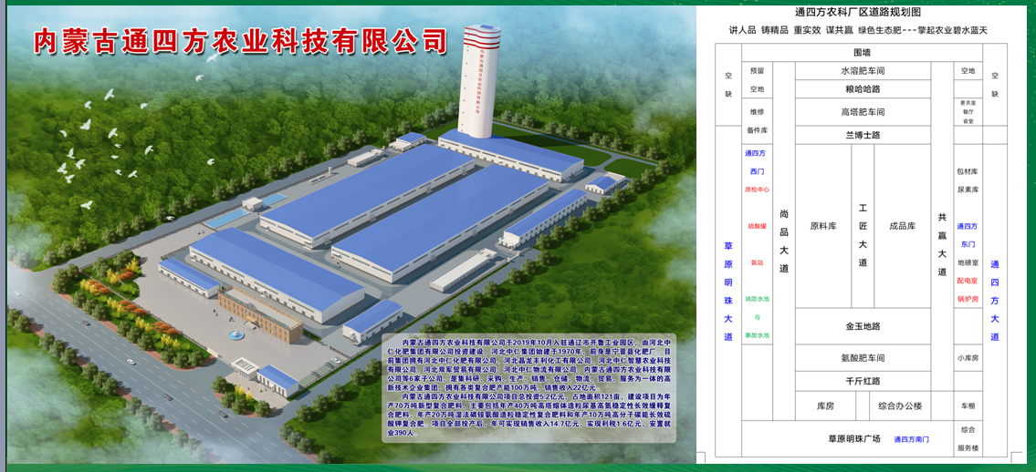 內(nèi)蒙古通四方農(nóng)業(yè)科技有限公司(以下簡稱通四方農(nóng)科)是河北中仁集團在通遼市開魯縣投巨資建設(shè)的東四省重點生產(chǎn)基地,是開魯縣2019年度重點招商引資項目,2020年通遼市化肥行業(yè)龍頭企業(yè),內(nèi)蒙古自治區(qū)政府重點扶持涉農(nóng)企業(yè)。